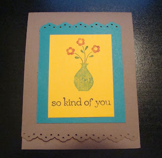 I love scrap booking and don't usually make cards expect at Stampin' Up parties. It was fun to try something different and I already have all the supplies to make cards. I used two of my new stamp sets, a new border eyelet punch, and leftover paper to make this cute and simple card. Maybe I will try making more than just one a year!